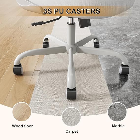 - SPACE-SAVING AND COMFORTABLE: The desk chair features 90°flip-up armrests, making it easy to move the chair underneath the table while not in use, perfect for compact spaces. The armrests are made of high-density foam and elastic mesh, soft and thickly wrapped, providing comfortable cushioning for the arms. The casters of the task chair make it easy to move effortlessly on both hard and carpeted floors