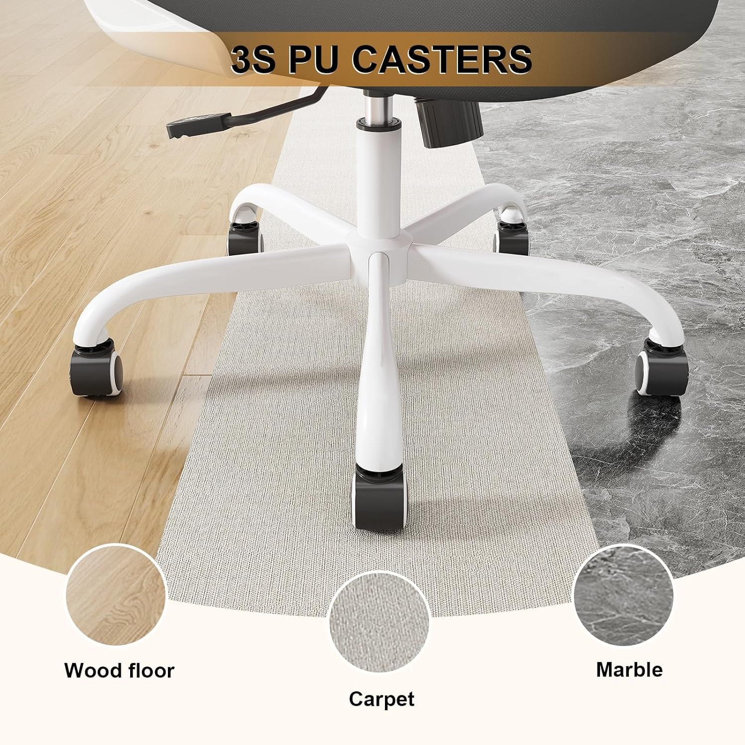 - SPACE-SAVING AND COMFORTABLE: The desk chair features 90°flip-up armrests, making it easy to move the chair underneath the table while not in use, perfect for compact spaces. The armrests are made of high-density foam and elastic mesh, soft and thickly wrapped, providing comfortable cushioning for the arms. The casters of the task chair make it easy to move effortlessly on both hard and carpeted floors