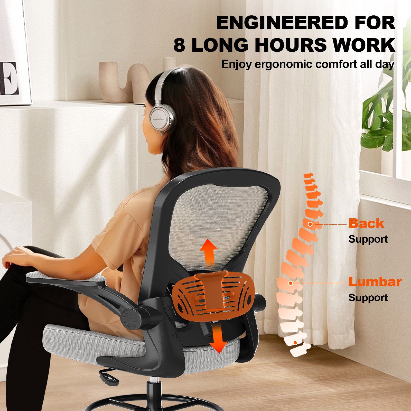 - Ergonomic Drafting Chair:The ergonomic design adapts seamlessly to high drafting tables and standard office desks. The adjustable lumbar support benefits designers, architects, engineers, and office professionals by reducing fatigue over long work sessions.