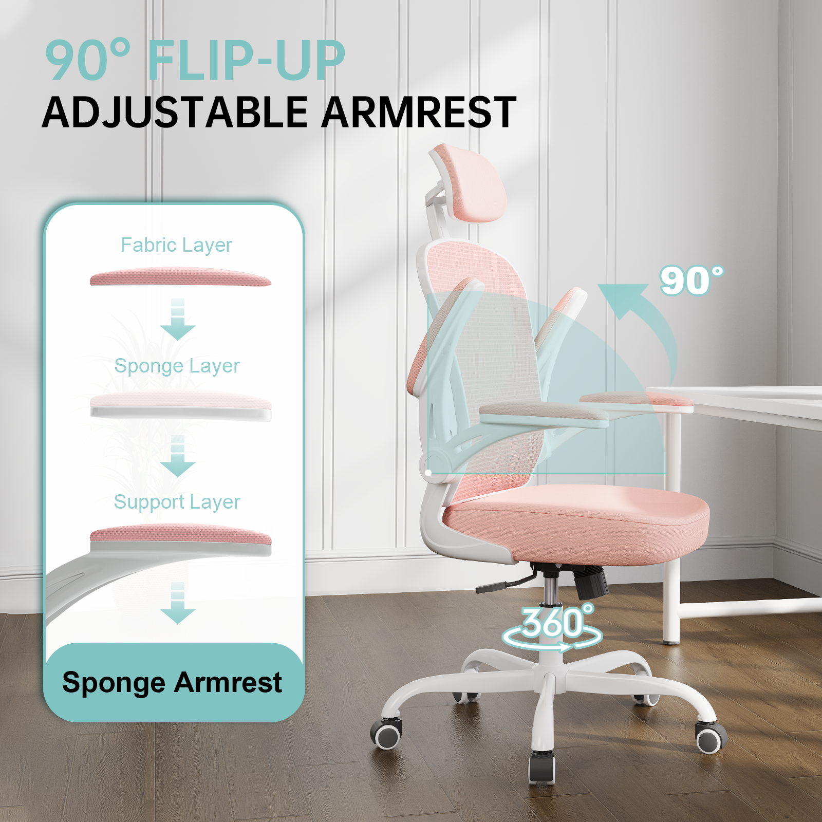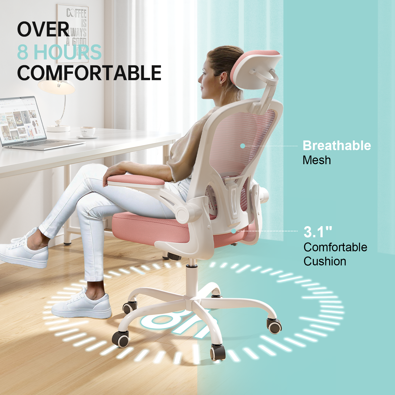 Ergonomic Office Chair Home High Back Desk Chair for Long Hours Comfortable White+Pink