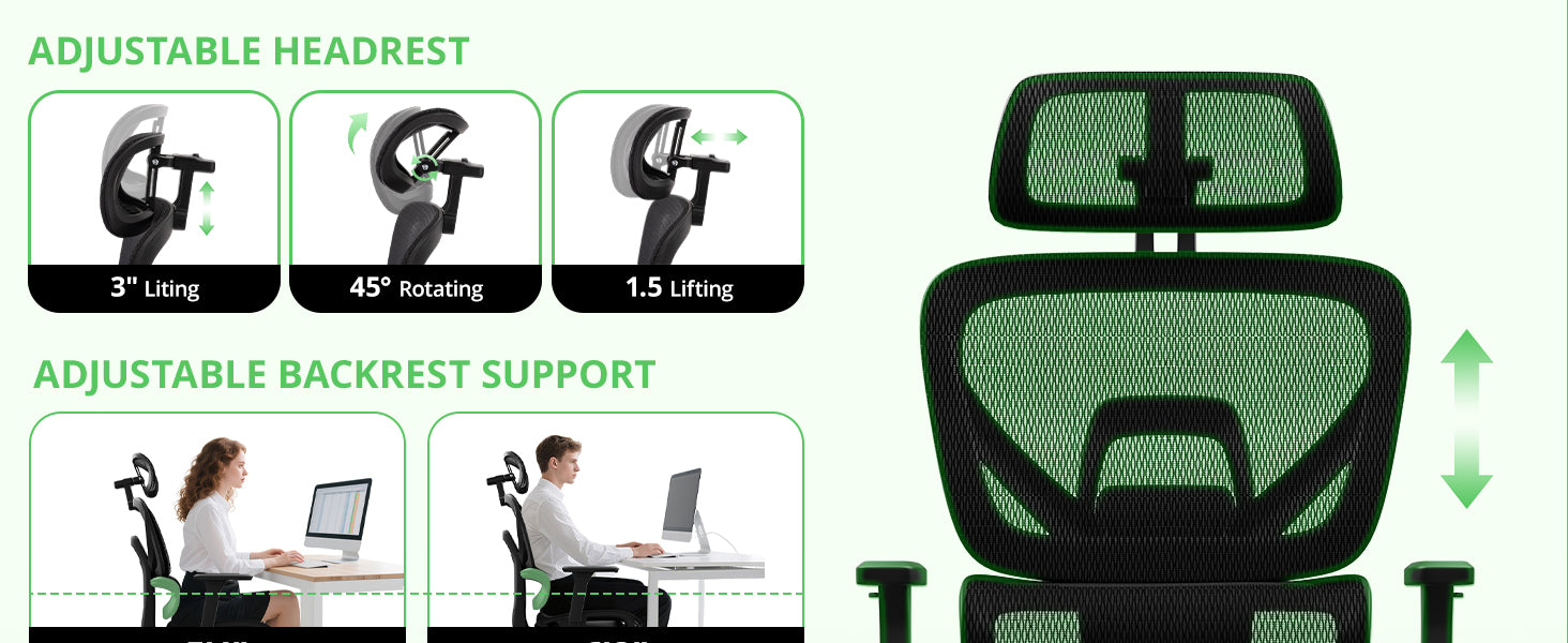 - 3D HEADREST FOR NECK & SHOULDER RELIEF : Offers vertical, forward/backward, and rotational adjustment to fit different neck lengths and sitting angles. Great for users who want the headrest to support the neck precisely during recline or upright posture.