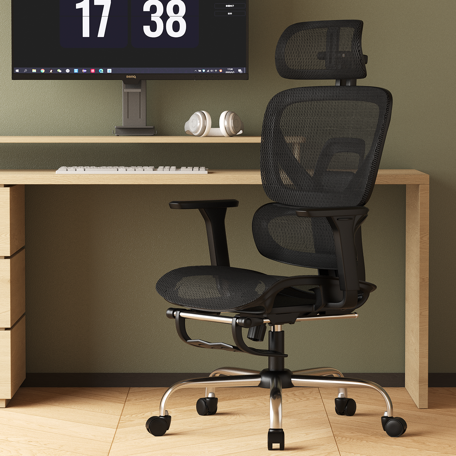 Ergonomic Office Chair with Footrest, Mesh Desk Chair Adjustable Lumbar Support